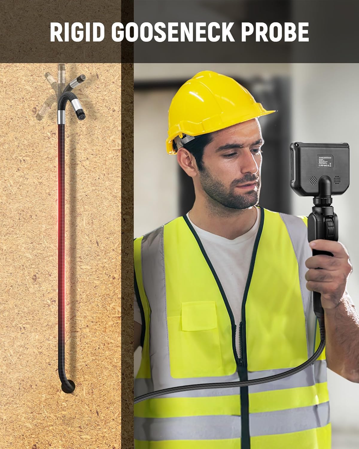 The flexible gooseneck design supports video recording, making it easy to enter narrow spaces for inspection.