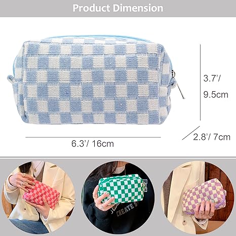 Checkered Makeup Bag for Purse Portable Zipper Make Up Pouch Small Cosmetic Case for Travel Accessories (Blue)