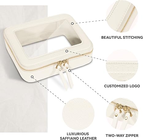 【ROOMY & STYLISH】 Measuring 8.3'' x 6.2'' x 2.1'', this makeup travel organizer embodies luxury and style. Its minimalist boxy design in a chic color exudes elegance; Crafted from exquisite leather and adorned with polished hardware