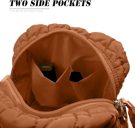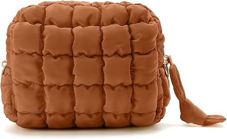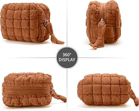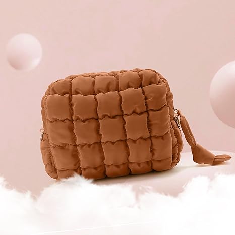 Puffy Makeup Bag Small Puffer Bag Cosmetic Bags Travel Toiletry Purse for Women, Cute Organizer Pouch, Toffee